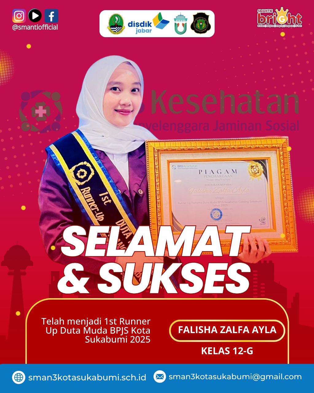 Salam sehat, sejahtera selalu. Bersyukur pada Ilahi keluarga besar SMAN 3 Kota Sukabumi hadir dengan website yang ada dihadapan anda. Semoga website ini menjadi bagian dari khidmat SMAN 3 Kota Sukabumi pada publik terkait informasi...