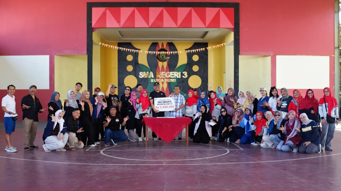 SUKABUMI – Semangat kolaborasi dan kepedulian kembali menyelimuti lingkungan SMAN 3 Sukabumi dalam perhelatan akbar IKA SMANTI NYAAH KA ADI JILID 3 pada Jumat, 4 Oktober 2025. Bertempat di GOR SMAN 3, kegiatan yang diprakarsai oleh Ikatan Alumni (IKA) SMAN 3 ini sukses memadukan kesehatan fisik, kepedulian sosial, dan aksi lingkungan.