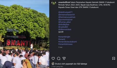 Salam sehat, sejahtera selalu. Bersyukur pada Ilahi keluarga besar SMAN 3 Kota Sukabumi hadir dengan website yang ada dihadapan anda. Semoga website ini menjadi bagian dari khidmat SMAN 3 Kota Sukabumi pada publik terkait informasi...