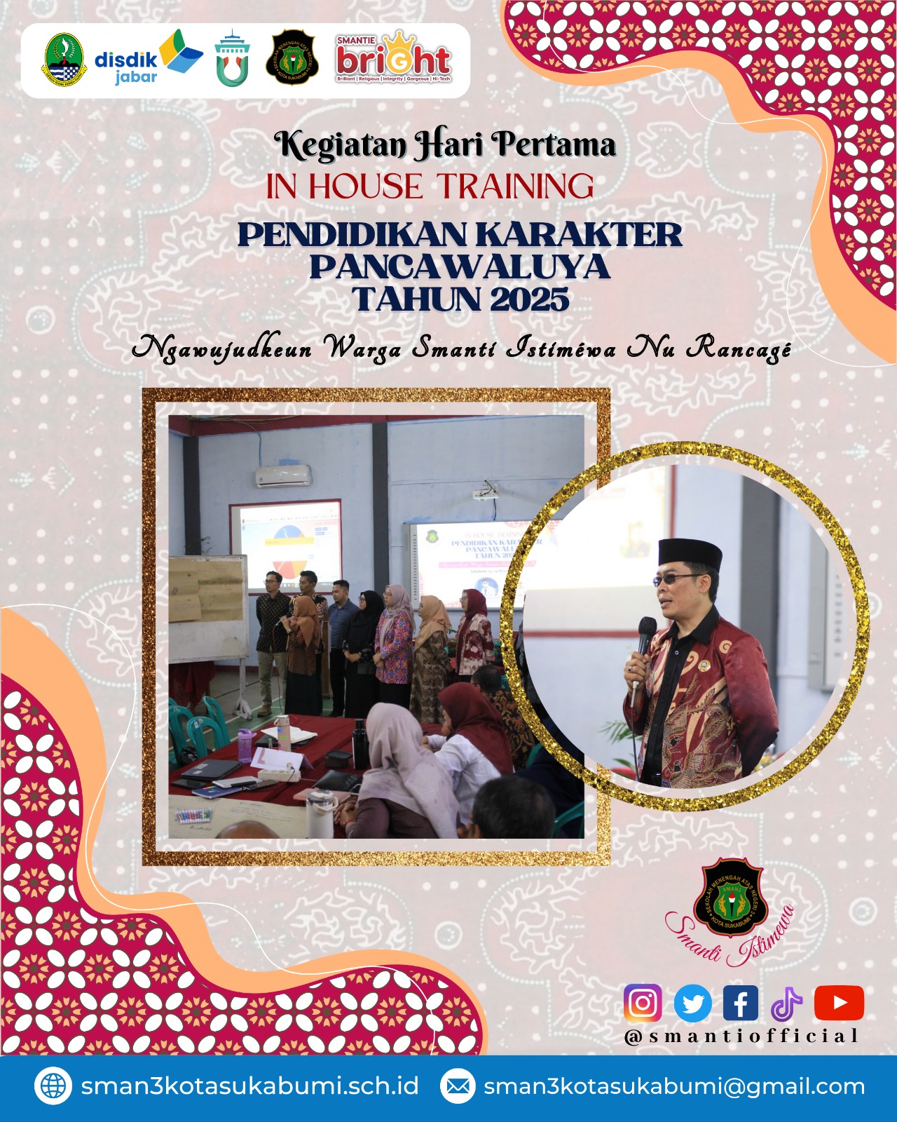 Seluruh Civitas Akademika SMAN 3 Sukabumi sangat antusias, fokus dan bahagia mengikuti kegiatan IHT Pendidikan Karakter Pancawaluya di hari pertama ini.